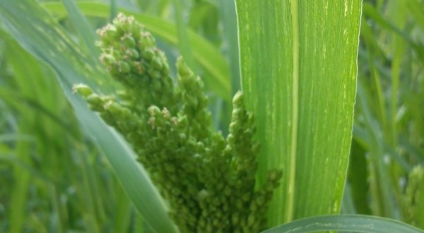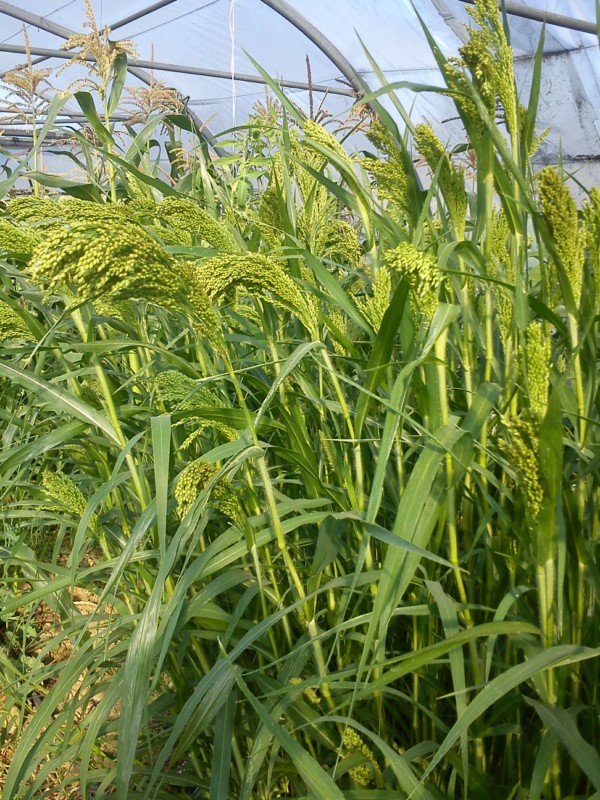 Voici le millet qui prépare de beaux grains… Et je ne vais pas le broyer avant que les grains soient arrivés à maturité.