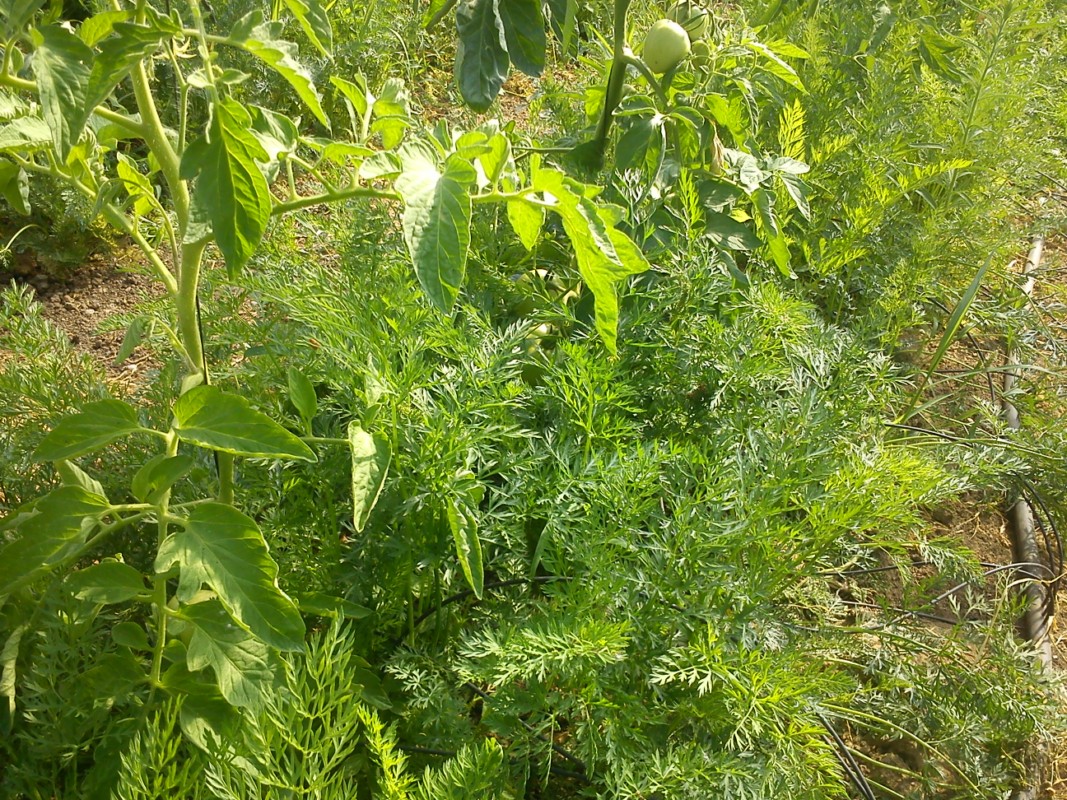 Il y a plusieurs solutions, comme de faire place nette pour installer la nouvelle culture (surtout quand il s’agit des tomates !). Non, moi j’ai choisi d’installer les tomates au milieu des carottes.