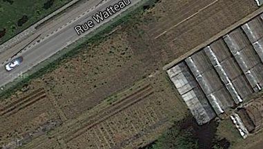 La vue satellite de GoogleMap montre à présent le dessin de mes jardins. L’image date de 2014. Toutes les planches n’étaient pas encore mises en culture et les premières n’étaient cultivées qu’en partie. Mais c’est bien la forme actuelle de mon travail. Vous les voyez, ces petites lignes dans le sens de la longueur ?