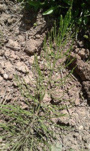 Eh bien, cette prêle des champs, précieuse et fameuse, pousse dans un de mes jardins. Je l’arrache pour en utiliser et… pour qu’elle ne concurrence pas les cultures. Ce sont les potirons qui occupent ce jardin cette année.