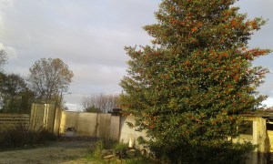 Vous l’avez probablement remarqué, si vous êtes déjà venus visiter les lieux. Il y a un houx magnifique à l’entrée du terrain.