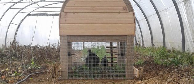 Leur venue m’a poussée à fabriquer un équipement auquel je pensais depuis longtemps, un poulailler mobile. Assez solide pour résister aux prédateurs (j’espère !) et très facile à déplacer.
