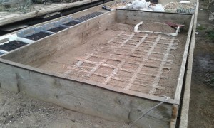 A côté des premières caisses de semis de l’année, j’installe un coffre de châssis pour abriter la nappe chauffante.