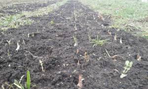 Dans les champs, les cultures sont encore discrètes. A côté des navets, carottes et poireaux qui terminent leur temps, les échalotes iront bientôt rejoindre les petites fèves et les aulx en plein démarrage.