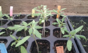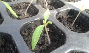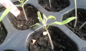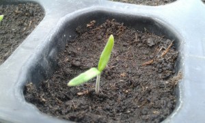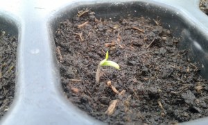 Et je ne résiste pas au plaisir de vous montrer les premiers balbutiements de cette drôle de plante qui viendra bientôt remplir les tunnels de culture.
