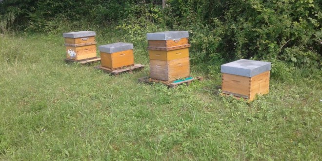 Il faut dire qu’elles n’ont pas trop de chemin à faire pour y arriver, depuis qu’un ami apiculteur a installé quatre premières ruches dans la prairie.