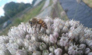 Elles ne laissent pas passer leur chance de visiter dans les différents jardins les fleurs de bourrache, de poireaux, de pommes-de-terre, de courgettes, de tomates…. et les multiples rangées de tilleul en fleur juste au-delà de la clôture.
