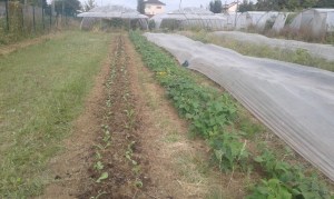 Les derniers melons, les patates douces, les courgettes, tomates, concombres, aubergines et poivrons cèderont la place dans les semaines qui viennent aux laitues d’hiver, épinard, mâche, carotte de printemps, oignons nouveaux et betterave…