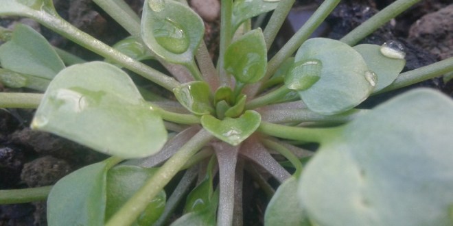 On l’appelle aussi « pourpier d’hiver ». C’est effectivement une cousine du pourpier qui se plaît, lui, quand il fait bien chaud. Mais elle n’en a pas du tout l’acidité. C’est au contraire une salade douce et croquante, très agréable.