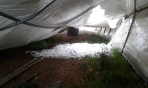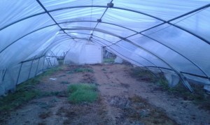 Sur le terrain, les installations résistent presque bien. A part quelques bâches arrachées, le plus gros dégât est un tunnel décroché d’un côté et déformé par la force du vent.