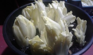 La première étape est une culture de chicorée en plein champ. Ce sont 2 planches entières que j’y ai consacrées en 2018. Les besoins importants en eau de cette culture ont été difficiles à satisfaire pendant cette année de canicule. Cela a donné une grande partie de racines trop petites.