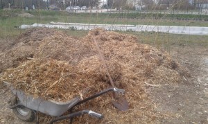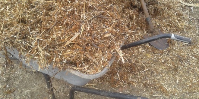 Voici mes nouveaux meilleurs amis, brouette, pelle et tas de broyat…