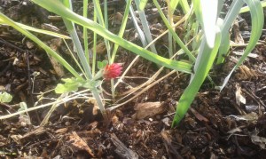 Il est accompagné de quelques pieds de trèfle incarnat. Ce digne représentant de la famille des Fabacées capte directement l’azote de l’air. Il produit donc son propre engrais, avant de le partager avec ses voisins.