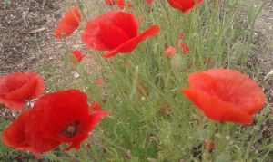 N’oublions pas les coquelicots qui se ressèment ici et là, donnant du relief aux planches de cultures en cours de remplissage.