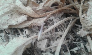 Puis j’en ai rencontré une autre en épandant du broyat sur des restes d’épinards tout secs, dans la grande serre.
