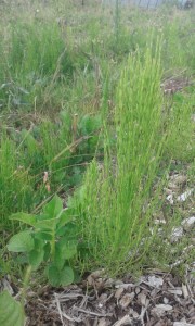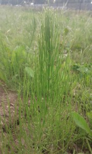 Cette année ce sont les pommes-de-terre qui occupent le jardin colonisé par la prêle. La récolte de prêle est donc aussi nécessaire pour éviter qu’elle ne concurrence la culture de la saison.
