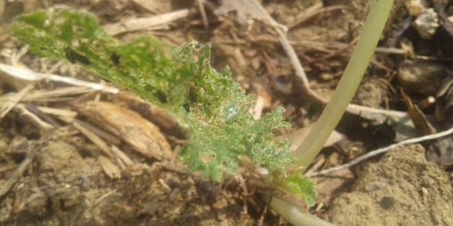 Les responsables sont les petites bêtes noires que l’on aperçoit sur les feuilles, des altises, petits coléoptères sauteurs.