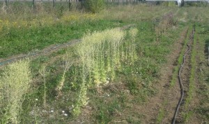 Les laitues ayant très mal supporté les excès climatiques de l’année, très peu ont pu être récoltées. Et c’est à peine si l’on voit qu’il en manque parmi les toupets fleuris des pieds qui n’ont pas su pommer. Voici encore une grosse récolte de semences en perspective.