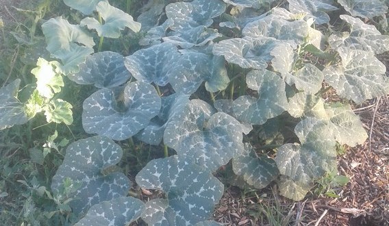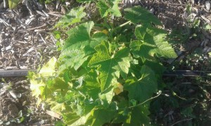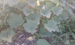 Quelques pieds abrités entre 2 serres et plantés tardivement ont vite rattrapé le retard et sont devenus bien plus beaux. A défaut de donner une récolte suffisante, ils confirment la nécessité d’installer les potirons dans des petits coins abrités.