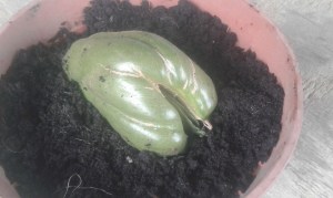 1, 2, 3, 4, le dernier observé me reste dans la main. Planté directement en pot, il devrait donner un nouveau plant pour l’an prochain.