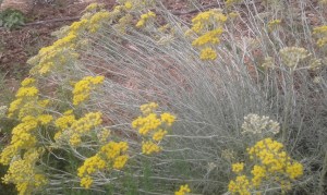 Son feuillage gris clair est rehaussé par l’éclosion progressive des petites corolles jaunes.