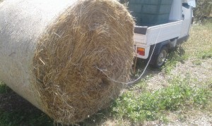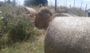 Les collègues ne chôment pas. Et voilà une petite collection de balles de foin qui se presse dans un coin du terrain.