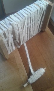 Les 30m de longueur du rouleau sont mis à sécher. Il ne faudrait pas que les tours se collent entre eux en une bobine indémêlable.