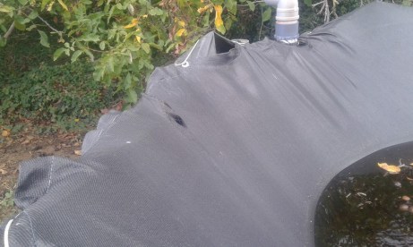 Le filet de protection contre les feuilles a formé une piscine suspendue…
