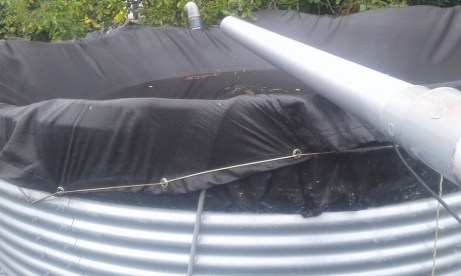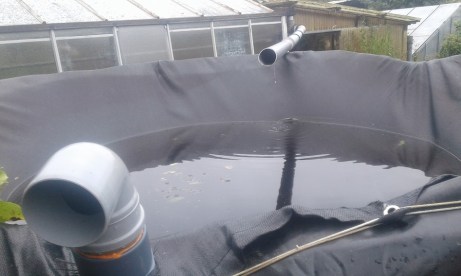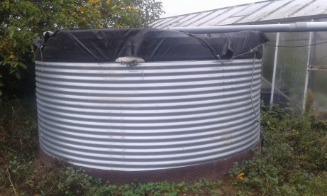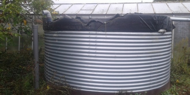Voici une petite année que les eaux de toiture de la grande serre sont collectées dans une citerne. Restée vide pendant plusieurs mois, elle vient tout juste de voir arriver une grosse quantité d’eau.