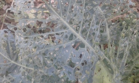 Moins grave et plus artistique… les piérides ont transformé certaines feuilles en dentelle.