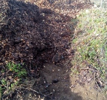 Par chance, en contournant l’obstacle, le modelé du terrain permet de creuser facilement un chemin d’accès pour la brouette.