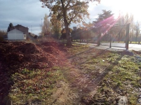 Plutôt que d’aller remplir les bennes des déchetteries, je propose au gestionnaire du parc de les déposer en bordure du terrain, juste derrière le portail.