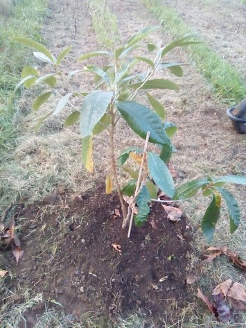 Au titre des fruitiers qui trouvent place sur le terrain, c’est un petit néflier qui inaugure le bal (merci Isabelle !).