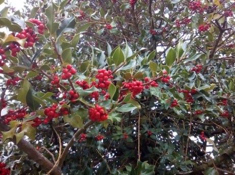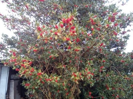Entre les deux, je ne me lasse pas d’admirer le houx géant qui trône à l’entrée du terrain.