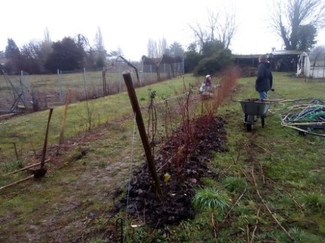 Travaux d’hiver, travaux divers… Le programme maraîcher n’est pas trop lourd avant la fin mars. C’est le moment d’apporter les soins aux cultures pérennes. C’était hier le tour des framboisiers.