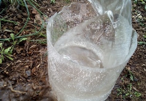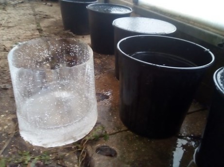 Une fuite sur le système de collecte des eaux pluviales de la grande serre m’amène à remplir des seaux d’eau.