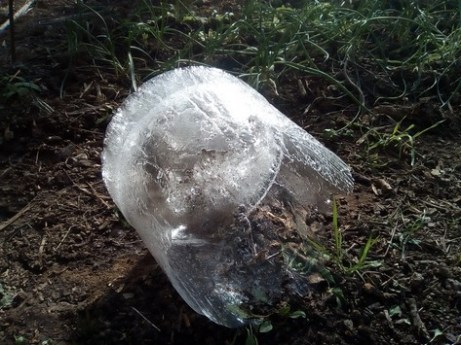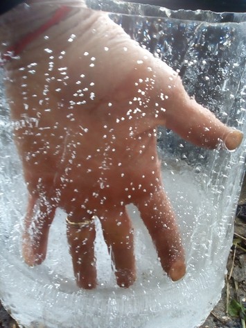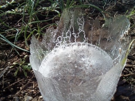 Voulant accéder à la partie liquide, je pensais devoir soulever une galette de glace, mais non ! L’eau avait gelé aussi sur les bords. Logique direz-vous peut-être…