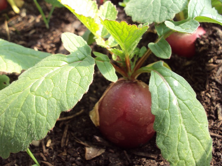 Je préfère cette variété au radis français traditionnel, rose à bout blanc, qui devient plus vite piquant s’il a un peu chaud ou s’il manque d’eau.