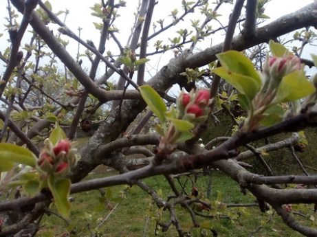 Et les pommiers traînent encore les pieds en laissant doucement grossir des boutons roses… qui libéreront des fleurs blanches quand même ! Allez comprendre !