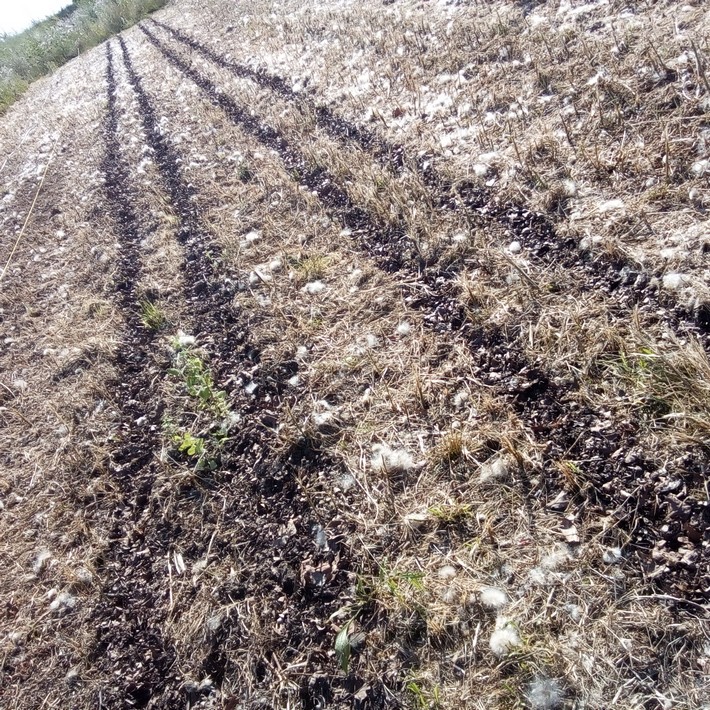 Et la préparation d’un semis de carottes « de la dernière chance » offre un tracé bien inhabituel dans les restes de broyage.