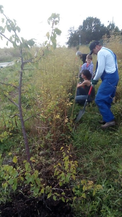 La petite équipe réunie samedi a vaillamment extirpé les encombrantes broussailles pour redonner à chaque fruitier un coin de ciel et une disponibilité de volume racinaire.