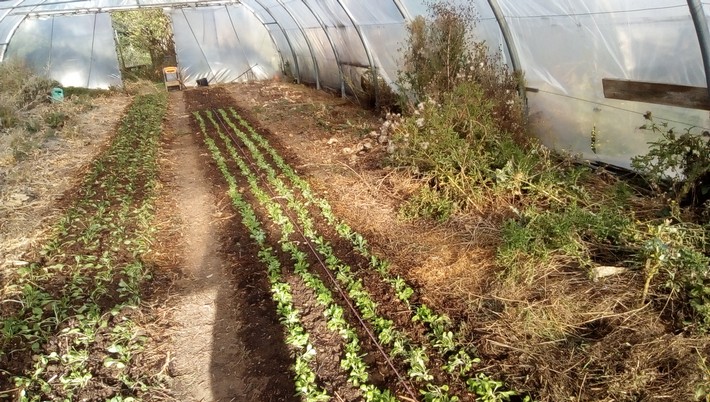 Les deux premières planches désherbées sont aussitôt plantées de mâche et épinard. Pas de temps à perdre…