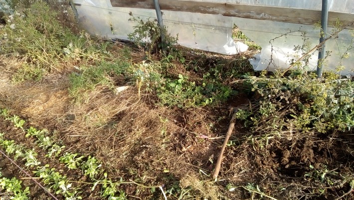 L’espace couvert ainsi récupéré, un gros désherbage s’impose.