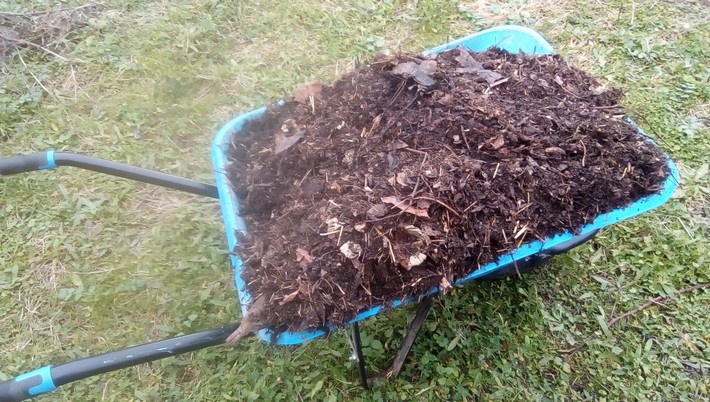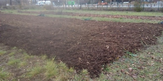 La parcelle voisine de mes jardins est désormais couverte d’un broyat de branches. Voici qui m’intéresse pour protéger les sols pendant la saison froide. C’est même une urgence cette année, compte tenu du degré d’envahissement herbacé suite à la tempête.