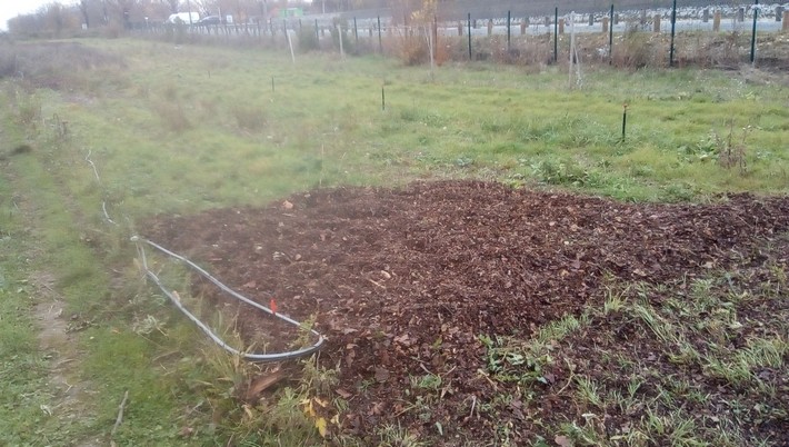 Cette couverture devrait permettre d’absorber une partie des pluies hivernales, d’étouffer un peu les adventices trop bien implantées et de protéger la vie du sol.