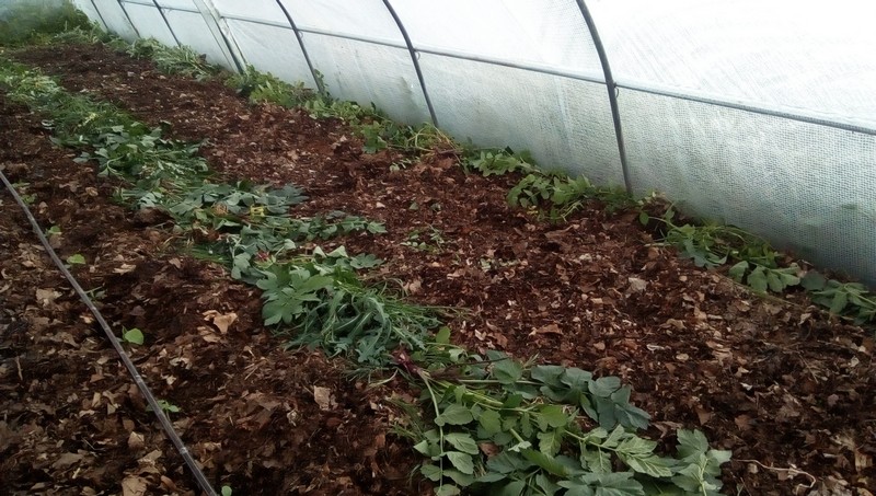 L’arracher permet de recouvrir les passe-pieds et de libérer la planche pour la plantation prochaine des aubergines.