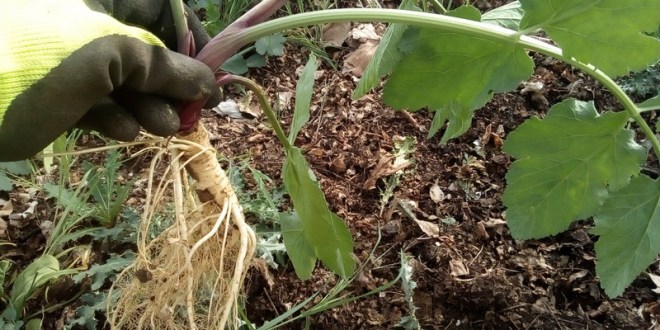 L’arracher permet de recouvrir les passe-pieds et de libérer la planche pour la plantation prochaine des aubergines.