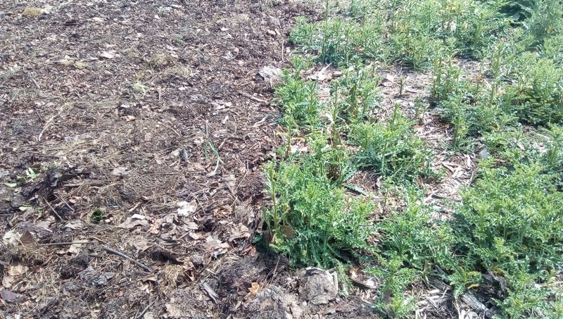 Même si le liseron ne semble pas trop gêné par le dispositif, cela semble efficace sur les panais, les graminées et les chardons.