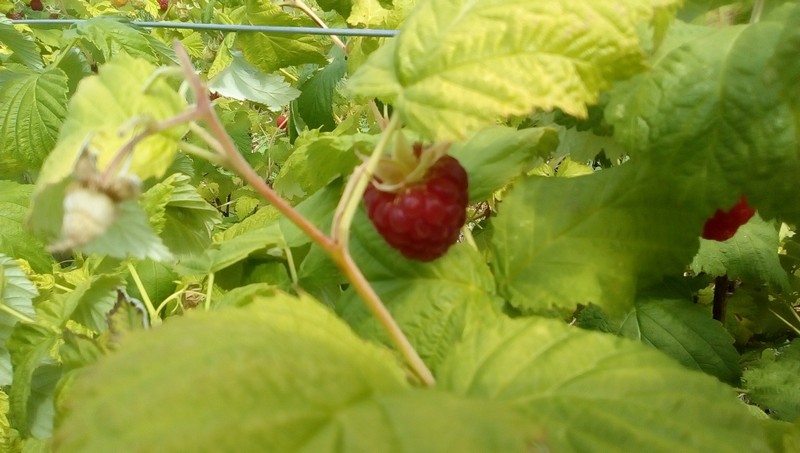 Les framboises, quant à elles, étaient bien sagement accrochées à leur place, au bout d’une branche.