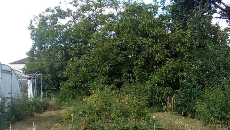 Deux vénérables noyers offrent leur ombre épaisse juste derrière la grande serre.